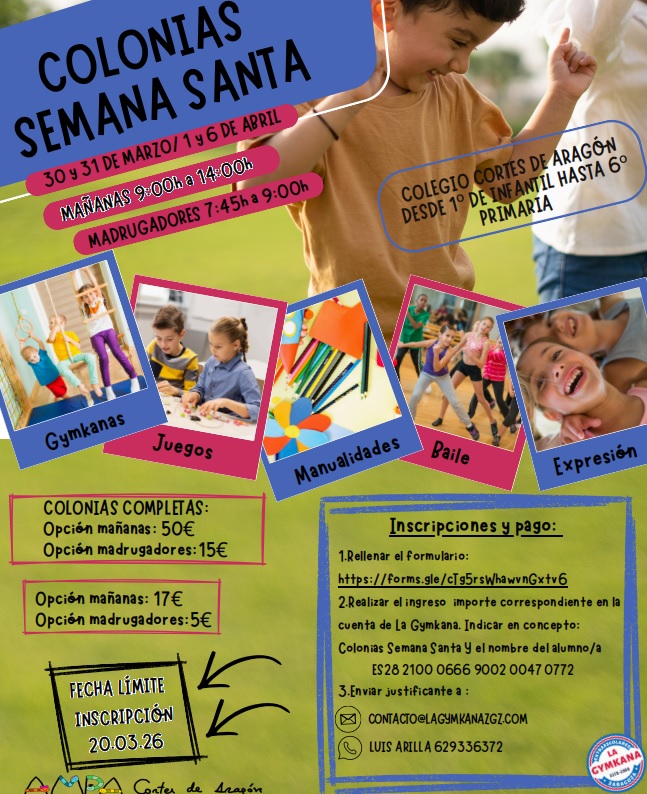 Adjuntamos la circular con toda la información necesaria (precios, fechas de inscripción, etc.,): Información colonias semana santa 2025-26